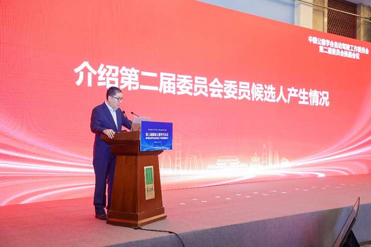 中国公路学会自动驾驶委员会秘书长乔云介绍委员会候选人情况