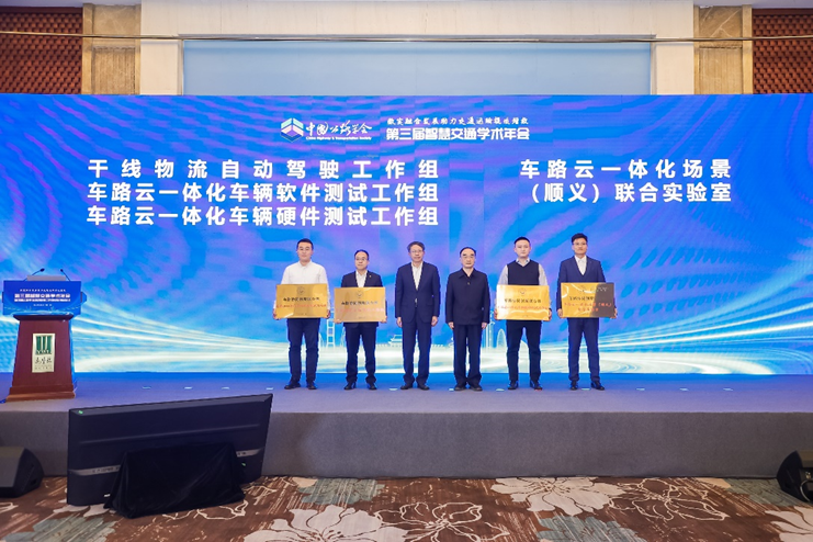 成果发布环节,车路协同创新联合体宣布了“三组一室”的正式成立,即由中交投资有限公司牵头的“干线物流自动驾驶工作组”,由中国软件评测中心负责牵头的“车路云一体化车辆软件测试工作组”,由中汽中心中汽科技(北京)有限公司牵头的“车路云一体化车辆硬件测试工作组”和与北京顺鑫福通大数据集团有限公司联合建设“车路云一体化场景(顺义)联合实验室”。翁孟勇理事长和李克强院士为牵头单位授牌。